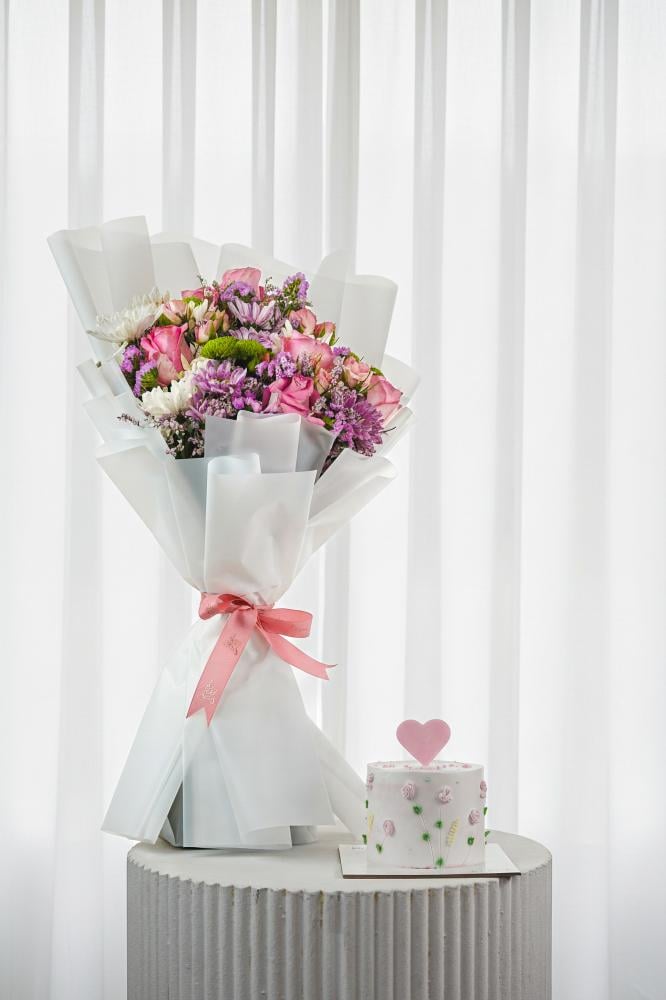 اطلب باقة ورد مميزة مع كيك "خجل الحب" الآن من Lets Party، ودع رقة الزهور تحكي أصدق مشاعرك.