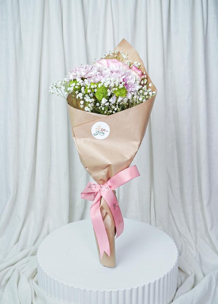 - الاسم: Mix Pink & Green Mini Bouquet – باقة ورد ميني رقيقة